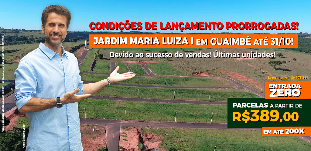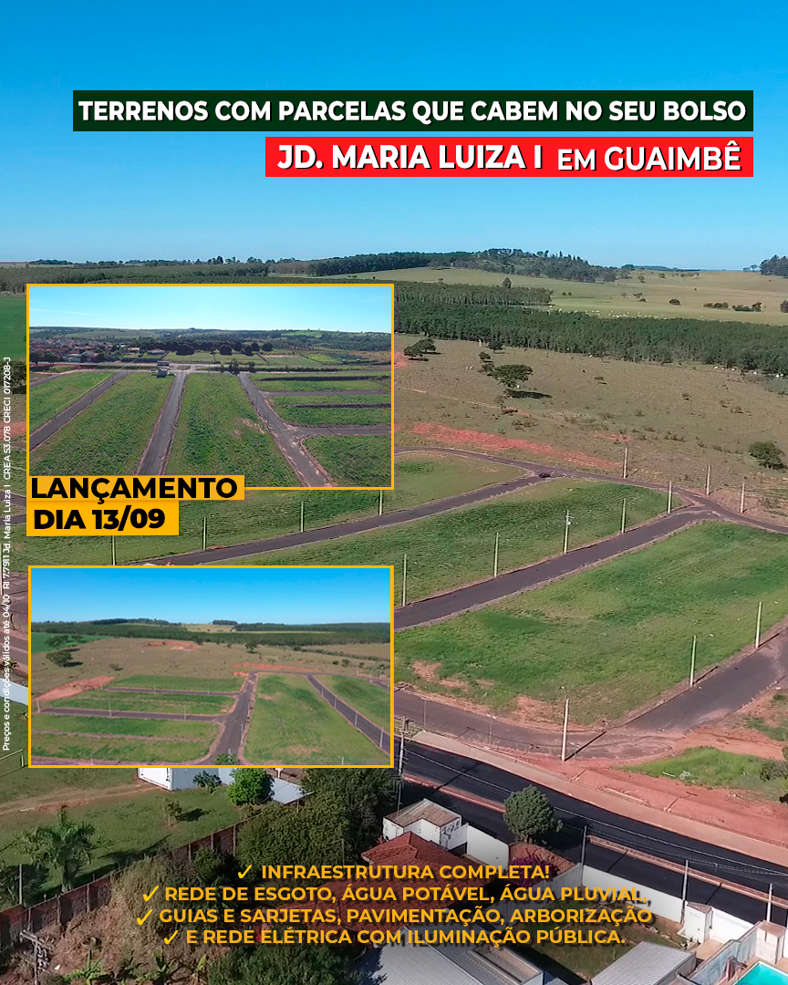 Tamanho dos lotes: 173,33 m2 até 351,75 m2